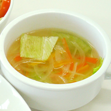 レタスはざく切りにし、人参は千切りにする。玉ねぎは薄く切る。