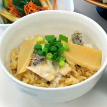炊飯器に研いだ米とA、@のだし汁と調味料を入れて、普通に炊き込む。