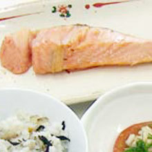 鮭の切り身に塩を振り、そのまま5分程度おく。